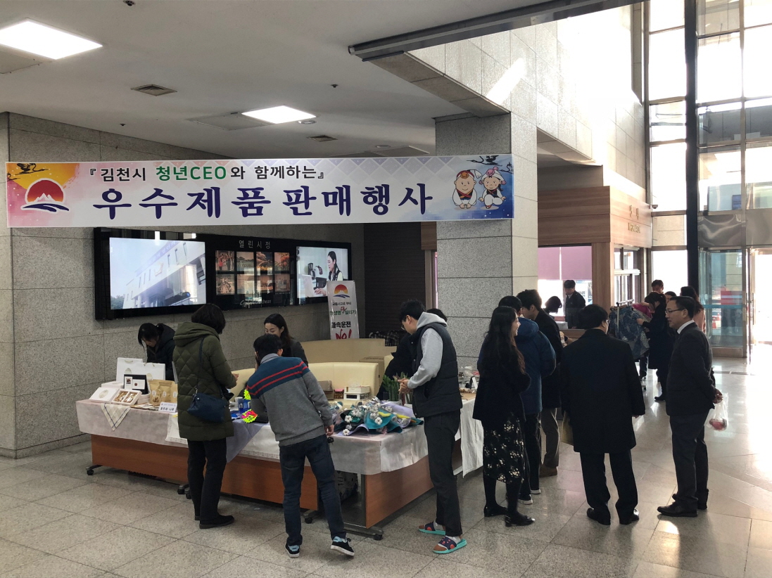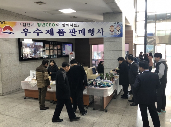 | 김천시(박보생 시장)가 배출한 청년CEO들의 우수제품을 홍보하기 위한 「김천시 청년CEO 우수제품 홍보·판매행사」가 2018.2.7.(수)∼ 8(목) 양일간에 걸쳐 김천시청 1층 로비에서 개최됐다.