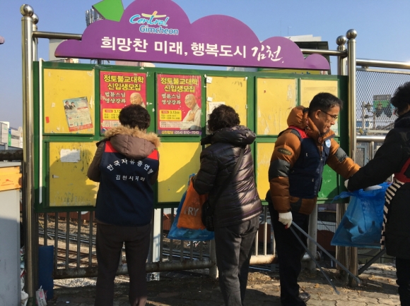 | 한국자유총연맹 김천시지부 평화남산동분회(분회장 문영인, 여성회장 김양숙)는 2월 8일 오전 10시부터 평화남산동 관내의 버스승강장 주변 정화 봉사활동을 펼쳤다.