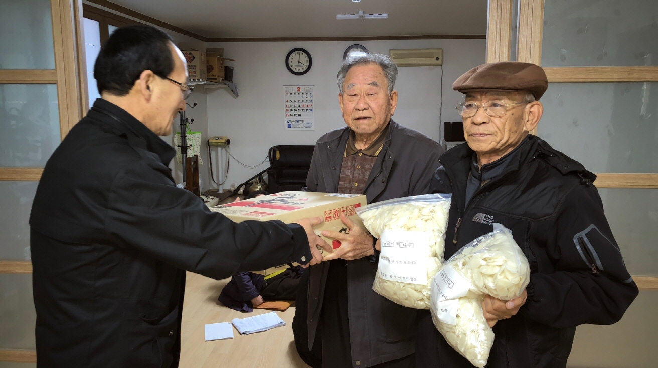 이번 행사는 설명절을 맞이하여 자칫 소외될 수 있는 경로당 어르신들에게 라면 1박스를 전달하고 훈훈한 정을 나누었으며 또한 경로당이 없는 열악한 3개 마을을 찾아 소외된 어르신들에게 위문품을 전달하였다.