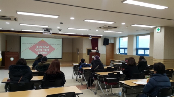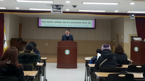 | 경상북도김천교육지원청(교육장 신정숙) 특수교육지원센터에서는 2018년 2월 12일(월)에 김천교육지원청 3층 대회의실에서 특수교육대상유아 학부모를 대상으로 초등학교 입학적응 지원 연수를 실시하였다.