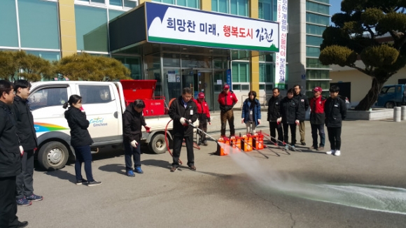 산불 발생 시 당황하여 좋은 진화장비가 있지만 사용 방법을 몰라 초기에 진화를 못하고 대형 산불로 이어지는 것을 사전에 방지하기 위하여 면사무소 직원들에게 반복적으로 진화장비 교육을 실시하고 있으며, 김종철 개령면장은 한건의 산불도 발생하지 않도록 사전준비 태세에 만전을 기하고 기계조작 및 사용 방법을 개개인이 숙지하여 체계적인 산불진화가 될 수 있도록 만반의 준비를 완료하였다. |