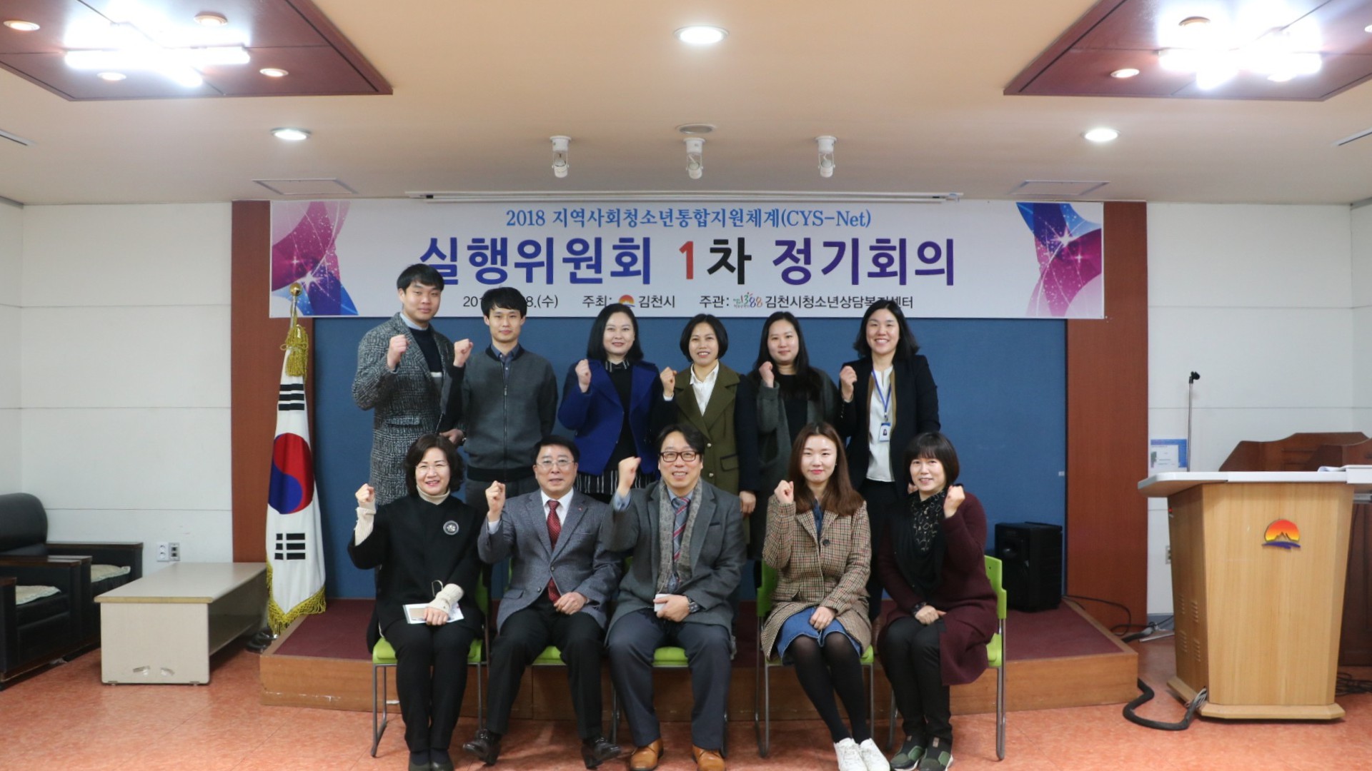 | 김천시청소년상담복지센터(센터장 김기식)는 2월 28일 김천시청소년상담복지센터 2층 회의실에서 실행위원회 위원 9명이 참석한 가운데 지역사회청소년통합지원체계(CYS-Net) 실행위원회 2018년 1차 정기회의를 개최했다.