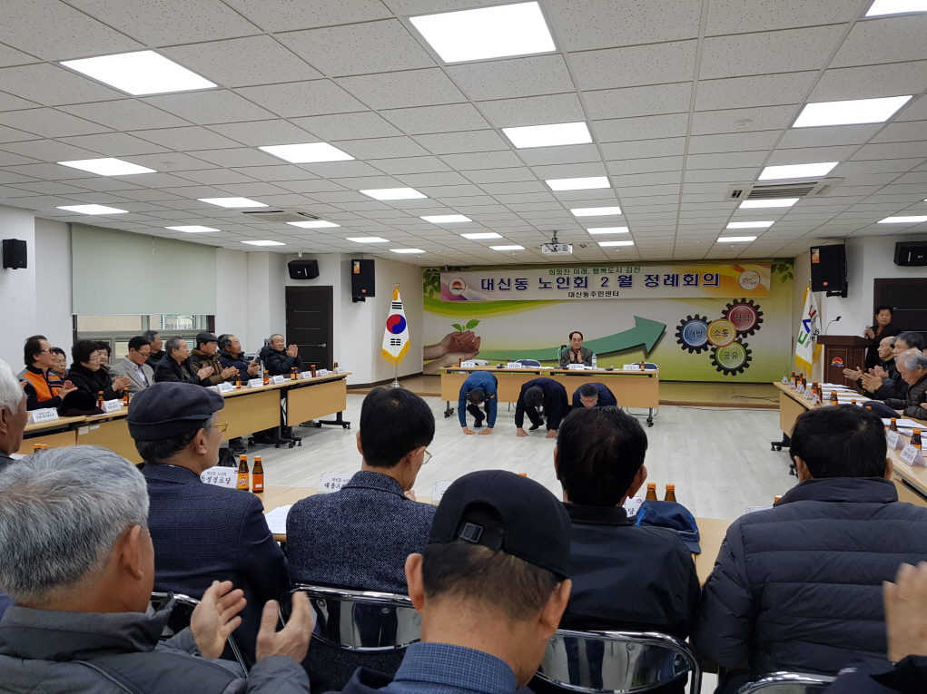 | 대신동 노인회(회장 박종철)는 2월 28일 10시30분 대신동 주민센터2층 회의실에서 노인회 임원 및 37개 마을 경로당 회장, 총무, 기관단체장 80여명이 참석한 가운데 정기총회를 가졌다.