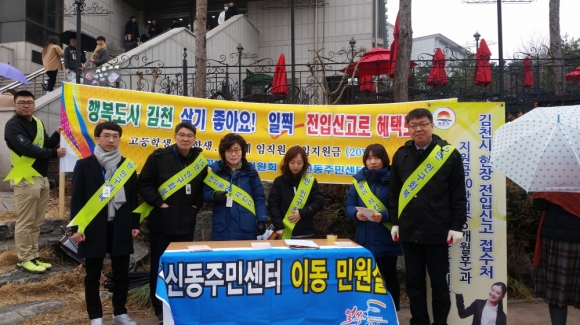 | 김천시 대신동(동장 김영우)은 15만 인구회복을 위하여 2월 28일 김천대학교 새내기 대학생을 대상으로 인구전입과 지원시책에 대한“대신동이동민원실”을 운영하였다.