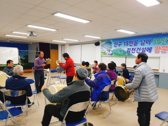 | 감문면(면장 이동형)은 지난달 말부터 3월 7일까지 면사무소 2층회의실에서 감문농악단원(단장 김석태)을 대상으로 찾아가는 빗내농악교실을 운영하고 있다.