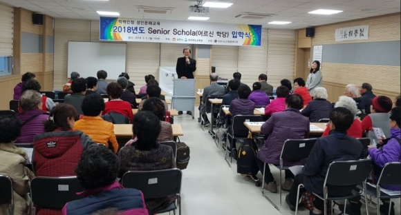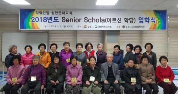 | 김천시노인종합복지관(관장 정재춘)은 3월 5일 배움의 기회를 놓친 김천지역 어르신들을 위해 초등학력인정 문해교육 “Senior Schola(어르신 학당)” 입학식을 가졌다.
