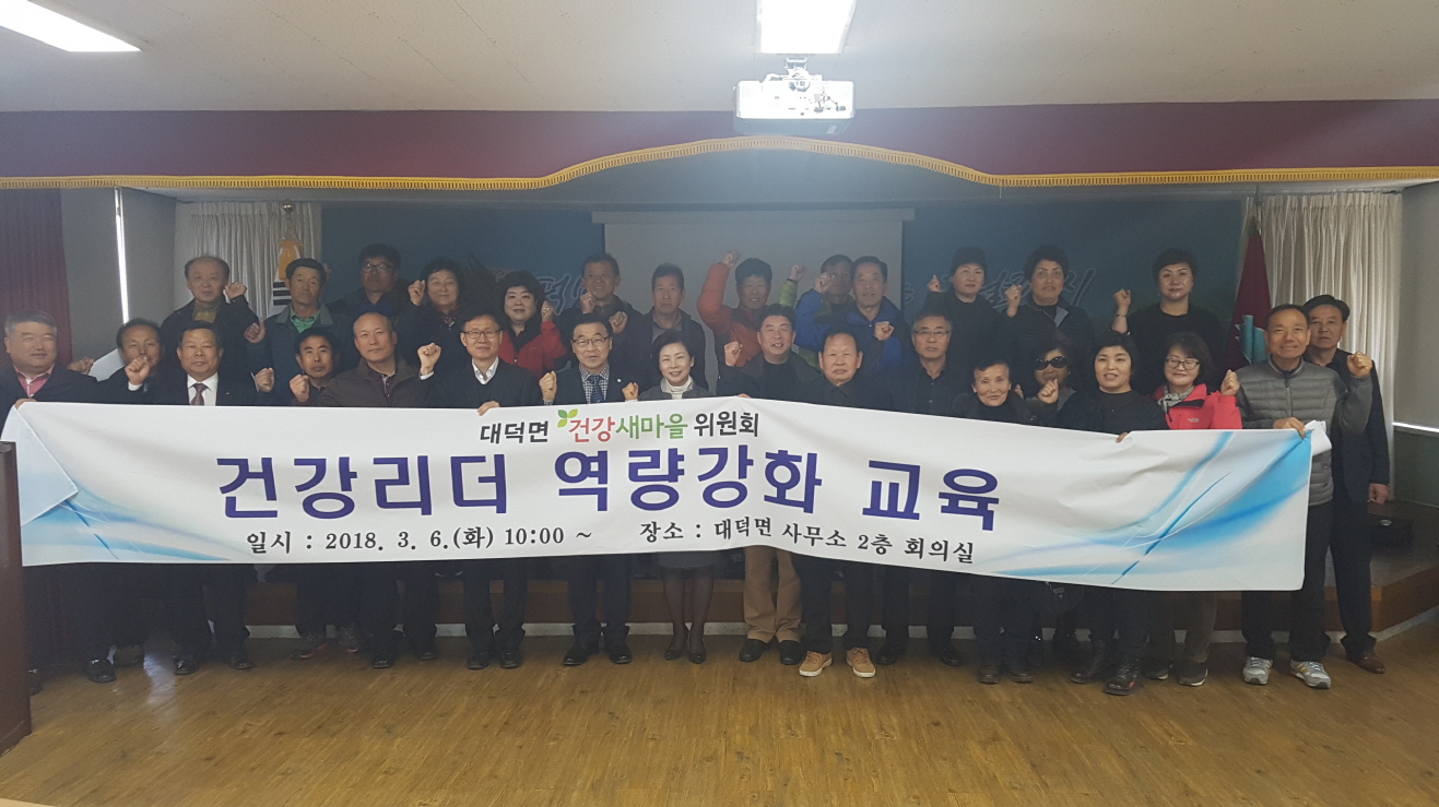 | 대덕면 건강새마을위원회(위원장 문희준)는 지난 3월 6일(화) 10시에 대덕면 사무소 (2층 회의실)에서 건강새마을조성사업 활성화를 위한 건강리더 역량강화교육을 실시하였다.