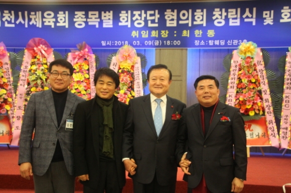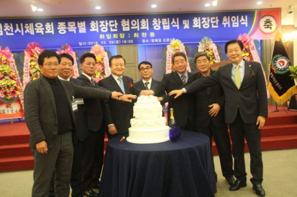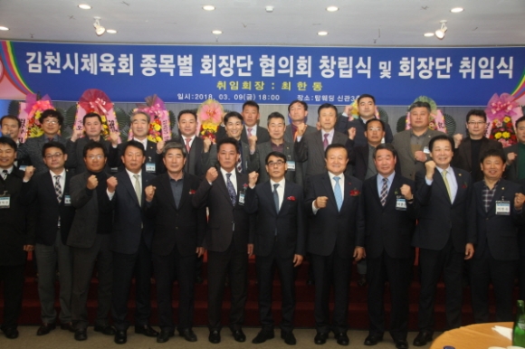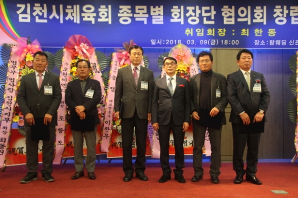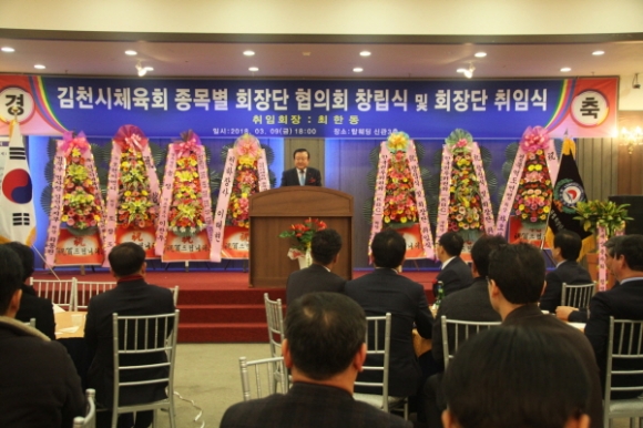 |  | | | ⓒ 김천내일신문 | | 김천시 탑 웨딩타운 신관에서 지난3월9일 내빈을 비롯한 시체육회 , 지인, 가족들이 함께 참석한 가운데 “김천시 체육회종목별회장단협의회 창립식및 회장단 취임식”이 성황리에 개최됐다. 종목별회장단협의회는 지난1월25일 출범체제를 갖추고 집행부를 구성하였다. 회장단협의회 준비 위원장을 맡고 있는 이상길 재무차장, 최원철부회장은 시 체육회 발전과 체계적 적극적인 지원, 관내 뛰어난 실력을 가진 인재 발굴 육성, 시체육회가 더욱 발전 할 수 있도록 단결과 화합, 각종 도 단위 전국단위대회에 참가하는 선수단들의 사기진작을 앙양하기 위한 협조라고 창립개요를 말했다.