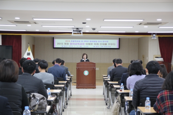 | 김천교육지원청(교육장 신정숙)은 3월 12일(월) 김천교육지원청 대회의실에서 관내 초등학교장 및 3학년 영어 수업 담당교원 70여명을 대상으로 연수를 실시하였다.