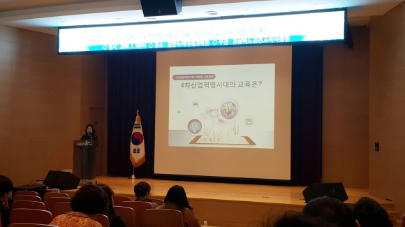 | 경상북도김천교육지원청(교육장 신정숙)은 3월 14일(수) 김천녹색미래과학관 2층 세미나실에서 초·중·고등학교 과학·영재교육 업무 담당교사와 희망 교사 80여명을 대상으로 창의융합형 과학교육환경 개선, 학생 중심의 과학교육, 사회와 소통하는 과학교육 업무 추진 효율화 추구를 위한 업무담당자 역량 강화 연수회를 개최하였다.