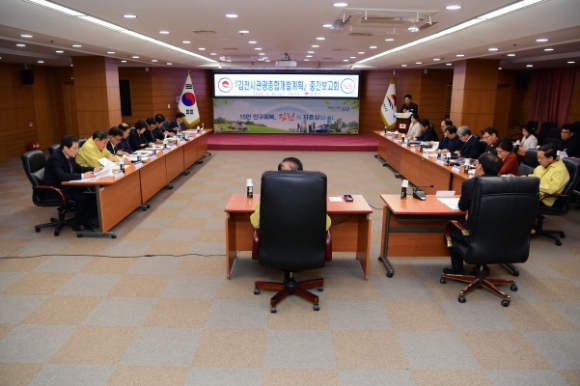 |  | | | ⓒ 김천내일신문 | | 김천시는 지난3월16일 박보생 시장을 비롯하여 관광 관련 부서장과 용역을 맡은 한국관광개발연구원의 연구진 등 20여명이 참석한 가운데 「김천시관광종합개발계획」 수립 연구용역 중간보고회를 가졌다.