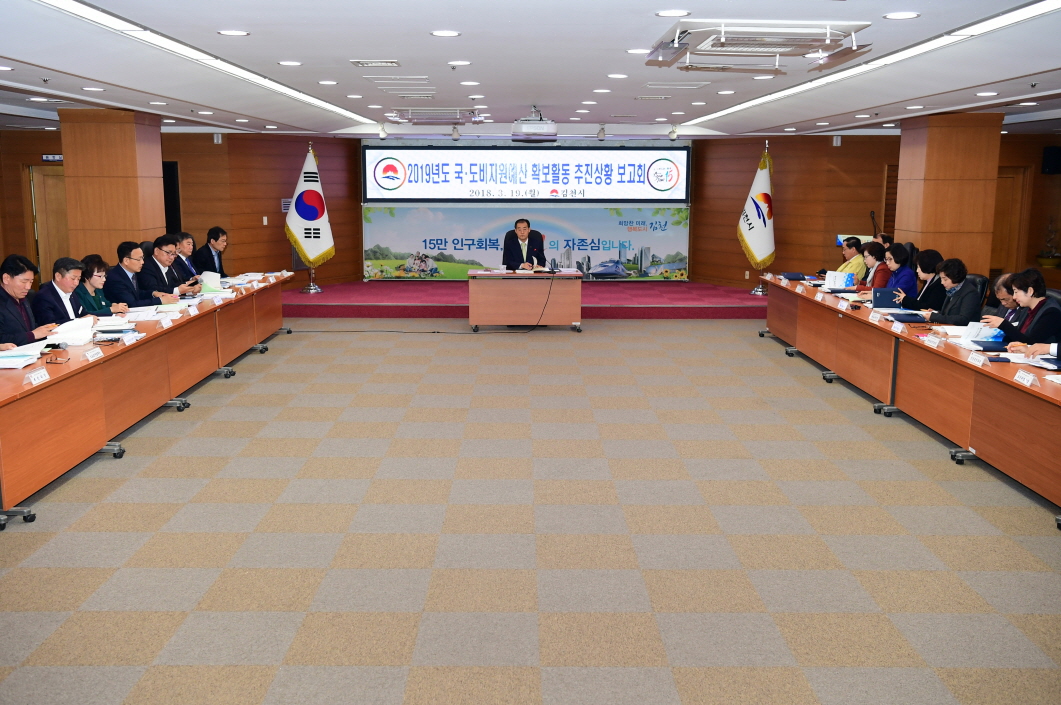 | 김천시(시장 박보생)는 3월 19일(월) 2019년도 신규시책 발굴 및 국․도비 확보를 위해 국․소장 및 실과소장이 참석한 가운데 국․도비확보 추진상황 보고회를 개최하였다. 주요건의사업 65개 사업에 총사업비 8조 2,000억원 중 2019년도 국․도비 예산확보 목표를 3,180억원으로 정하고 신규사업 지정 및 계속사업의 원활한 사업 추진을 위한 국․도비 예산확보를 위해 체계적인 대응방안을 마련할 계획이다.
