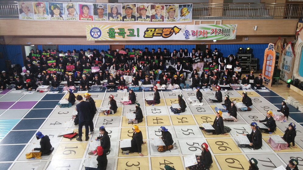 올해 첫 졸업생을 배출한 율곡고는 신설고의 이미지를 벗고 김천 혁신 도시의 명문으로 도약하기 위해 교장 선생님 이하 전교직원과 학생·학부모가 한마음이 되어 KBS ‘도전! 골든벨’ 프로그램 유치에 성공하였다. 그리고 선생님들의 적극적인 협조와 학생들의 열띤 도전과 응원 속에 녹화가 마무리되었다.
