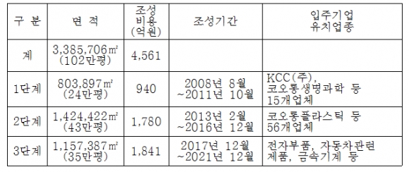 또한 지난해 12월 8일 기공식을 가진 3단계 조성사업은 전자부품, 자동차 및 트레일러 등 7개 업종을 유치, 현 정부의 국정운영 계획에 발맞춰 4천100여명의 일자리를 창출을 기대하고 있다.