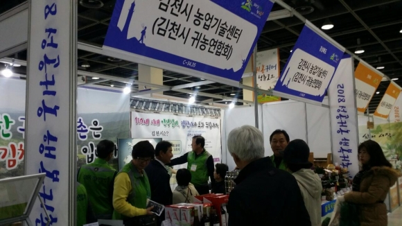 김천시는 이 번 행사에서 부스 2개를 임대하여 우리 지역의 우수 농특산물과 가공품( 식초, 전통주, 포도와인, 자두와인, 굼벵이 등)을 전시하고, 귀농귀촌을 희망하는 서울․경기지역의 도시민들에게 김천시의 귀농지원 정책과 교육을 열정적으로 홍보했다.