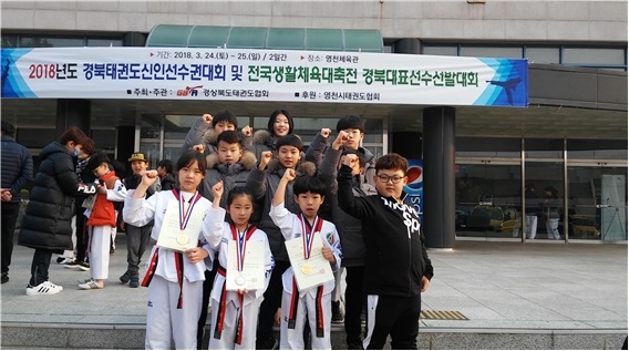 김천동신초등학교 출전 선수 4명(태은빈 6학년, 신민호 6학년, 이정응 5학년, 강동건 5학년)중 태은빈(6학년)선수가 경북대표선수로 선발되는 영광을 안았다. 태은빈 선수는 지난 3월초 무주태권도원에서 열린 2018 KETF 국가대표 및 상비군 선발대회에서 2위를 하였다 태은빈 선수는 5월에 충주에서 열리는 전국소년체육대회에서도 좋은 성적을 기대하며 열심히 훈련에 임하고 있다.