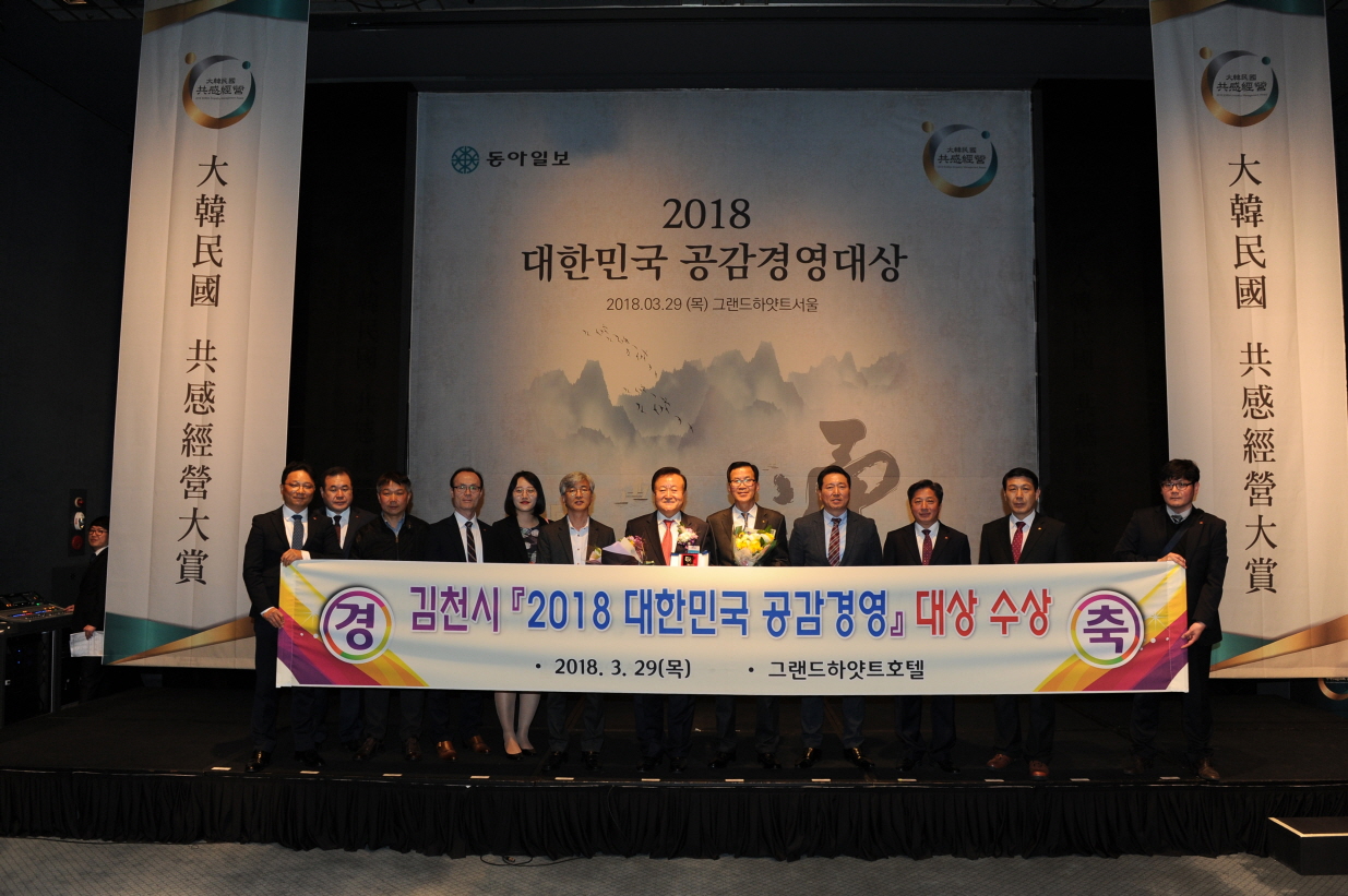 | 김천시(시장 박보생)는 지난 3월 29일 그랜드하얏트 서울 호텔에서 개최된 ‘2018 대한민국 공감경영 대상’을 수상했다.
