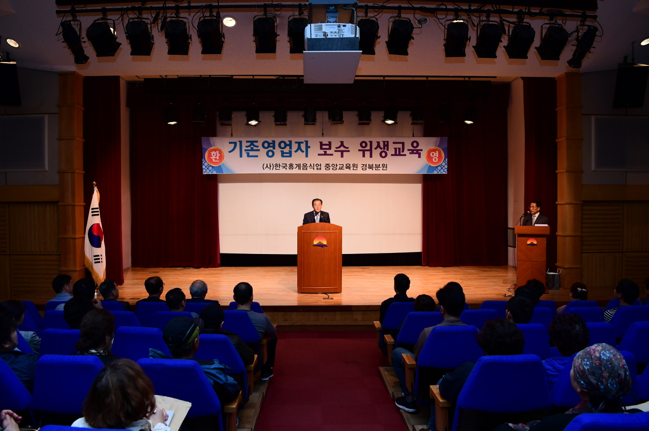 | 김천시와 (사)한국휴게음식업중앙회 김천시지부는 3월 29일 문화예술회관소공연장에서 휴게음식점 영업주 200여명이 참석한 가운데 정기총회 및 위생교육 그리고 주방문화개선사업 캠페인을 개최하였다.