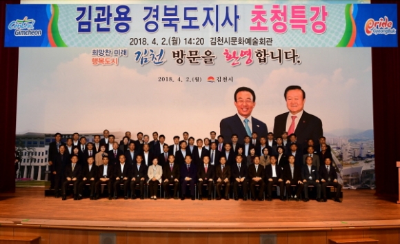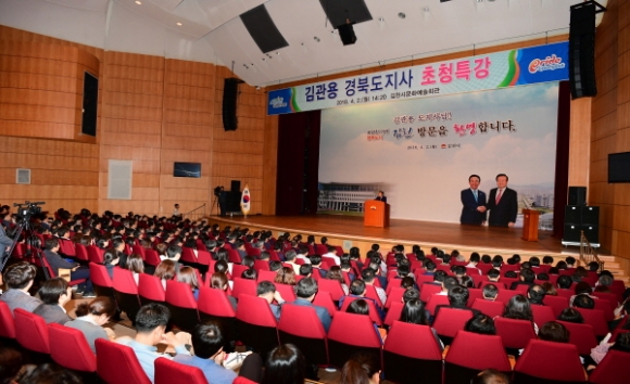 이날 특강은 박보생 김천시장을 비롯한 500여명의 김천시 공무원들이 참석하여 김관용지사의 민선 12년간의 도정 경험과 리더십, 경상북도의 향후 정책방향에 대한 내용의 강의가 있었다.