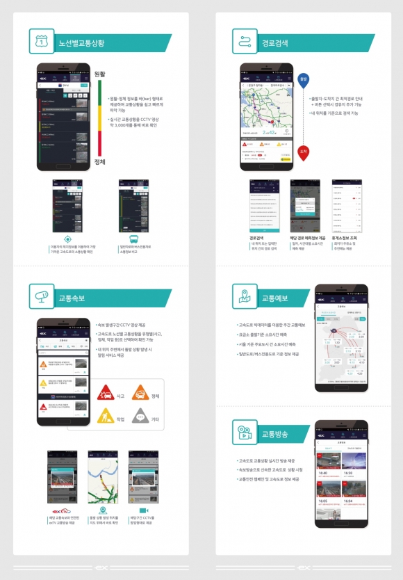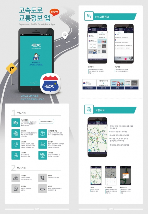 새롭게 출시된 버전은 이용자 중심으로 기능이 대폭 향상됐다. 먼저, 위치정보를 활용해 앱 이용자의 실제 위치가 교통 지도에 표출돼 주변의 CCTV, 휴게소 등을 바로 조회할 수 있다. 특히, 주행 중 전방의 교통사고, 정체 등 교통속보 알림 메시지가 자동으로 전송돼 돌발 상황에 대비할 수 있으며, 스마트폰을 사용하지 않거나 다른 앱을 이용할 때도 해당 교통속보 알림 서비스를 받을 수 있다.