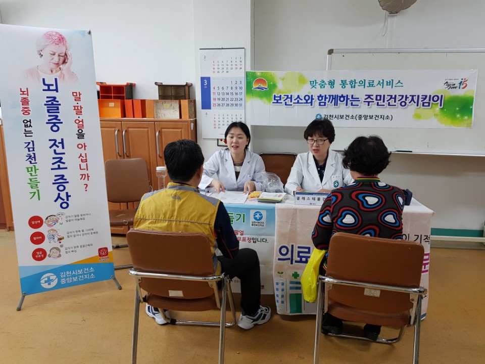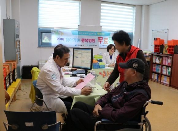 김천시 중앙보건지소가 주최하고, 김천의료원이 주관한「찾아가는 행복병원」은 의사, 간호사, 방사선사 등 10명의 의료진으로 구성되어 장애인 43명을 대상으로 진찰, 기초검사, 심전도, 골밀도, X-ray 촬영하고, 검사결과를 토대로 투약 처방을 했다.