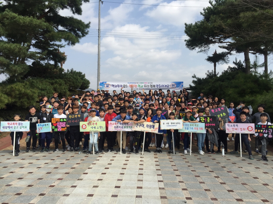 「학교폭력예방 및 건강증진을 위한 사제동행 벚꽃길 걷기대회」는 본교 운동장에서 시작하여 강변공원 일원까지 벚꽃길을 따라 진행하였다. 사제동행 벚꽃길 걷기대회 행사는 생활안전부에서 추진하는 학교폭력 예방교육, 보건계에서 추진하는 건강 증진 교육 그리고 강변공원 일원의 자연보호 캠페인 활동이 함께 실시되었으며 벚꽃길을 걸으면서 친구와 담소를 나누고 선생님과 돈독한 정을 쌓을 수 있도록 함으로써 인성교육과 건강증진 두 가지 목표를 함께 이룰 수 있었다.