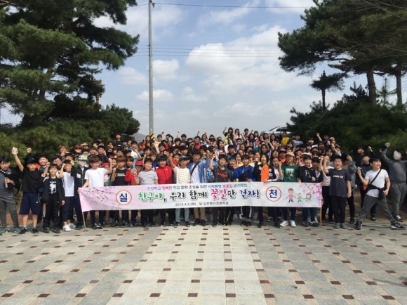| 김천동신초등학교(교장 이형석)은 4월 3일(수) 3,4,5,6학년 교직원 및 학생들을 대상으로 벚꽃길을 걸으며 친구사랑 마음을 키우고 건강하고 행복한 학교 문화 조성을 위한 「학교폭력예방 및 건강증진을 위한 사제동행 벚꽃길 걷기대회」를 실시하였다.