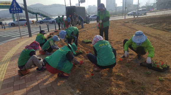 농소면 새마을협의회 아름다운 봄꽃길 조성에 구슬땀