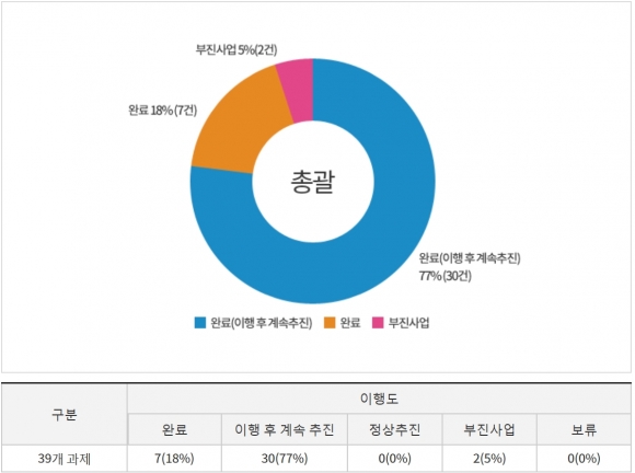 그리고 2008년도에 설립된 김천시인재양성 재단은 지난해 10월 장학기금 200억원을 조기에 달성하였으며(공약관리번호 6-4), 재단설립 10주년을 맞이하는 2018년도 현재까지 1,586명의 지역인재들에게 23억8천9백만원의 장학금을 지급했다. 이밖에도 전체 39개 공약사항 중 95%의 이행율을 보이고 있다. (※ 세부 공약별 현황은 시홈페이지 참조) [공약이행도] (김천시 홈페이지에서)