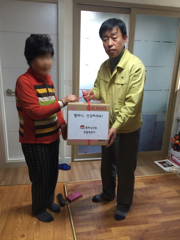 평화남산동 맞춤형복지팀, 복지사각지대 대상자에게 사랑의 밥솥 전달-