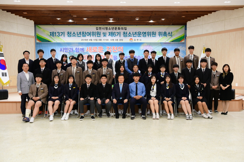 | 김천시(시장 박보생)는 지난 4월 10일 시청 3층 강당에서 「제13기 청소년참여위원회」와 「제6기 청소년운영위원회」위촉식을 가졌다.