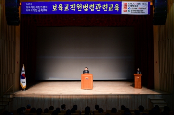|  | | | ⓒ 김천내일신문 | | 김천시(시장 박보생)에서는 4월12일 김천문화회관에서 김천시어린이집연합회 주관으로 보육교직원 450여명이 참석한 가운데 안심보육 윤리강령 선서와 어린이집 법령관련 보수교육을 실시했다.