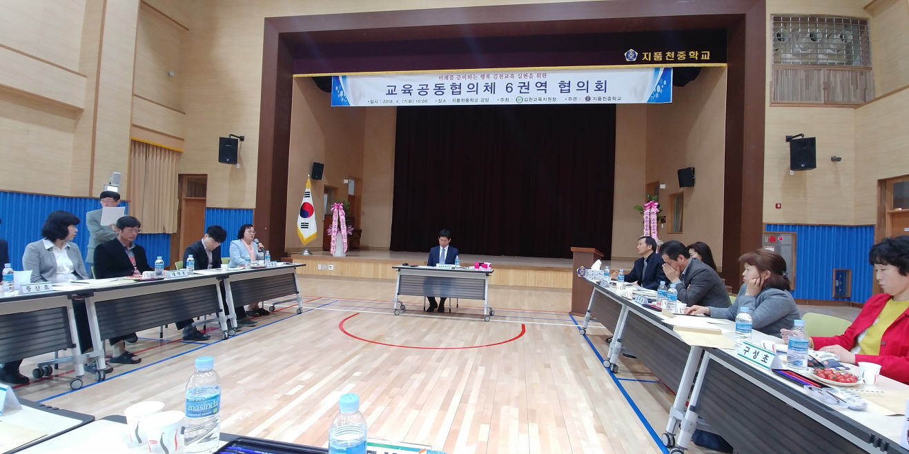 | 지품천중학교는 지난 4월 17일 본교 강당에서“미래를 준비하는 행복김천교육실현”을 위한「제1회 교육공동협의체 6권역 협의회」가 중심학교인 지품천중에서 열렸다.