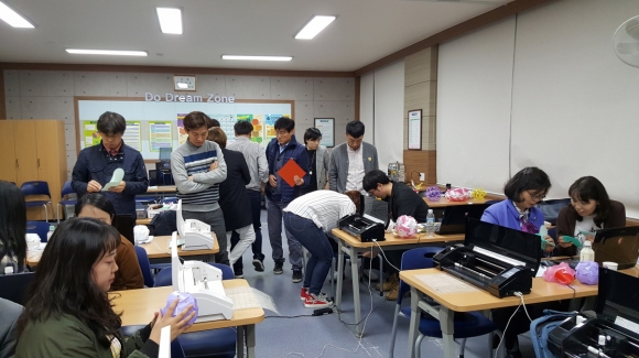 | 김천교육지원청(교육장 신정숙)은 4차 산업혁명 시대에 적응할 미래 인재 양성을 위해 메이커(Maker) 교육의 기반으로 3D프린터 활용법 연수를 4월 16일 17시부터 김천중학교에서 실시했다.