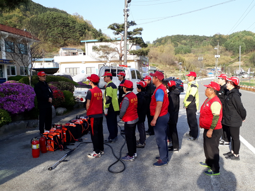 이번 훈련은 산불에 대한 주민의 경각심을 일깨우고 만일의 사태에 대한 초기 진화능력 및 전반적인 산불 대응력을 강화하기 위하여 실시한 훈련으로 차량 탑재 장비와 개인진화장비 등짐펌프 및 소화기를 이용하여 진행하였다.