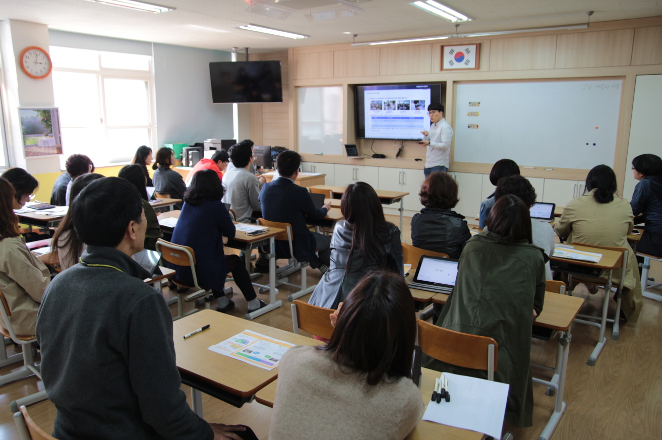 | 김천부곡초등학교(교장 이병철)는 4월 17일(화) 김천부곡초등학교 스마트교실에서 교사를 대상으로 2018학년도 1학기 경북사이버학습e-학습터 운영 방법 및 디지털교과서 활용 연수를 실시하였다. e학습터는 교육부, 한국교육학술정보원이 지원하고, 17개 시도교육청이 직접 운영하는 우리나라 공교육 대표 초등학교 온라인 학습서비스이다. 학생에게는 보충학습, 교사에게는 교실수업과 학습관리 서비스를 제공한다. 김천부곡초는 4~6학년 학생들을 대상으로 담임선생님이 사이버학급을 개설하여 20차시 이상 운영하고 있다.