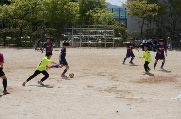 김천동신초등학교 6학년 2개 학급 학생들이 더운 날씨에도 불구하고 경기에 출전한 선수들을 위해 열띤 응원을 보내주었다. 신일초등학교와의 풋살 경기는 전반 15분, 후반 15분 경기로 진행되었고 3대 0으로 김천동신초등학교가 승리하며 마무리 되었다. 촬영된 영상은 4월 28일 토요일 9시 ‘꿈꾸는 운동장 두두두’ 프로그램에서 방영될 예정이다.