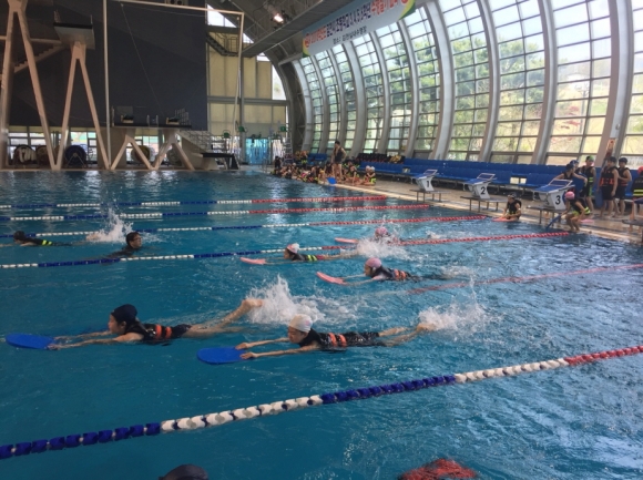 생존 수영교육은 물에 대한 적응력 향상 및 자기 생명 보호 안전 능력 강화, 수영 기능 체득을 통한 신체발달 향상을 목적으로 매일 2시간씩 5일 동안 총 10시간에 걸쳐 이루어지고, 학생들이 물에 대한 두려움과 공포심을 없애고 수영 수업에 잘 적응할 수 있도록 전문 수영 강사의 지도 아래 교육이 진행되었다.