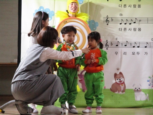 ‘멍뭉이의 특별한 이야기’라는 제목의 성폭력 예방교육은 친숙한 동물들이 등장하여 놀이 중 타인의 신체를 만지는 상황과 다른 사람이 자신의 몸을 보여 달라고 했을 때 적절히 대처하는 방법을 알려주는 등 실제 상황에서 일어날 수 있는 내용들로 이루어졌다. 동극이 끝난 후 성폭력 예방송을 함께 부르고, 사탕 ΟⅩ퀴즈를 풀어보며 단숙한 지식 전달이 아니라, 동극을 통해 유아가 기분 좋은 느낌과 나쁜 느낌을 구별하고, 실제 상황에서 주변에 도움을 요청할 수 있도록 교육이 이루어졌다.