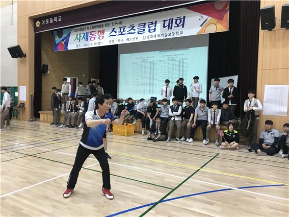 이는 4월 부터 5월, 약 2개월에 걸쳐 점심시간을 활용하여 ‘2018년 사제동행 스포츠클럽대회’를 열어 사제 간 화합의 한마당으로 사제 간의 관계를 회복하고 학교폭력예방을 위한 건강한 학교문화를 조성하고자 2016년부터 매년 열리고 있다.