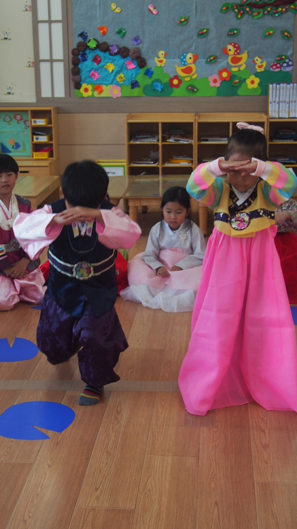 | 김천동부초등학교병설유치원(원장 권오균) 은하수반 친구들은 4월 27일(금)에 우리나라 전통예절을 경험해 보는 시간을 가졌다.