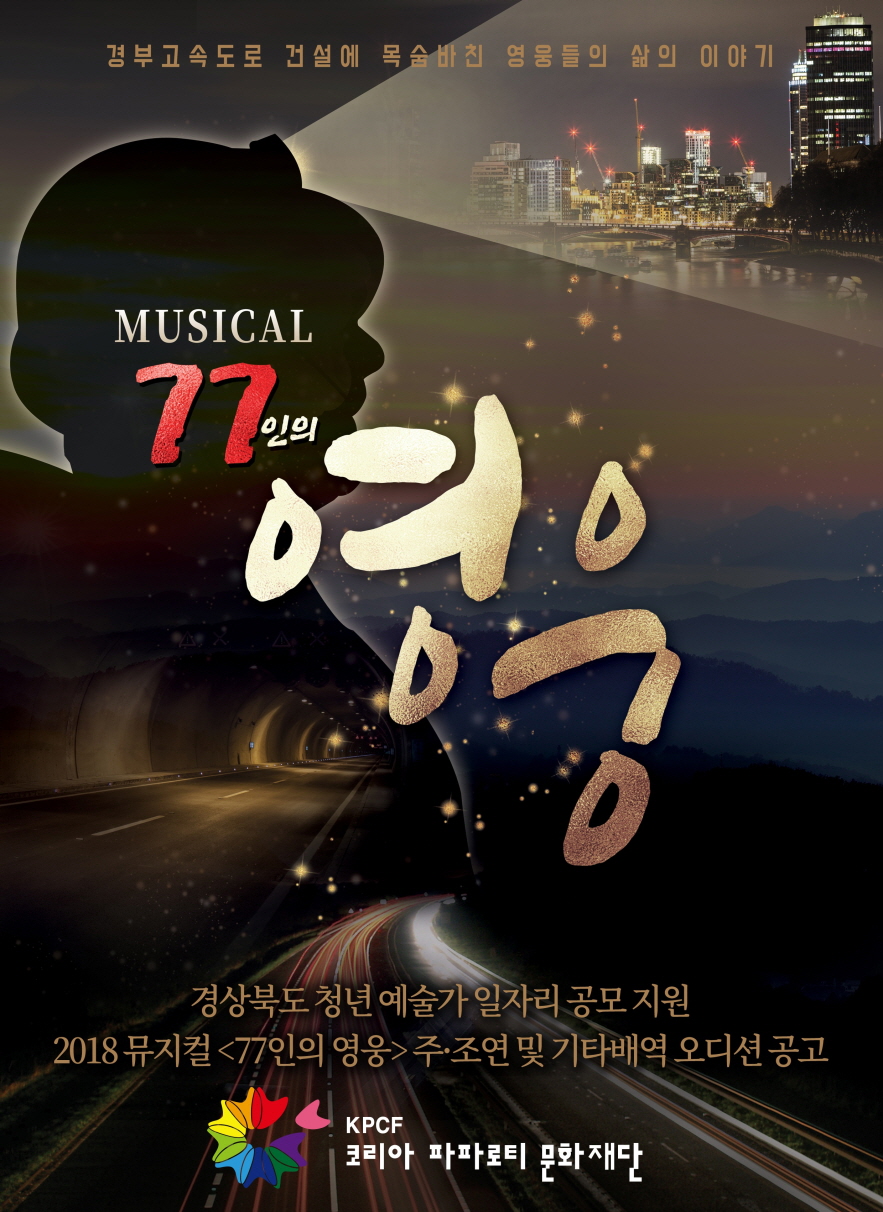 오디션 접수는 2018.4.27.일부터 5월 18일까지 실시되며, 자세한 내용은 공연 및 오디션 정보공유전문 웹사이트(www.otr.co.kr/‘77인의 영웅‘으로 검색)와 사)코리아파파로티 문화재단 홈페이지(www.kpaparotti.com)에서 확인할 수 있다.