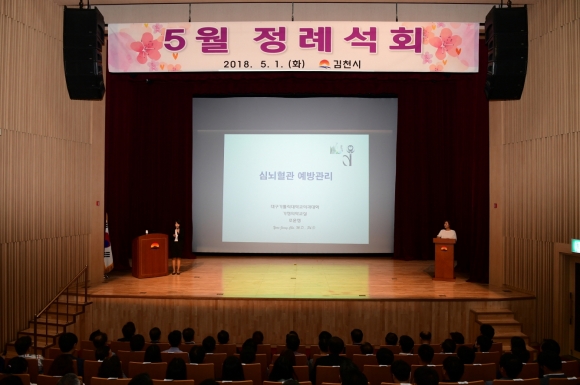 | 김천시(시장 박보생)는 갈수록 증가하고 있는 심뇌혈관질환에 대해 예방․관리법을 알리고 이를 적극적으로 실천할 수 있는 계기를 마련하기 위해 지난 5월 1일 김천시 문화회관에서 전 공무원을 대상으로 특강을 실시하였다.