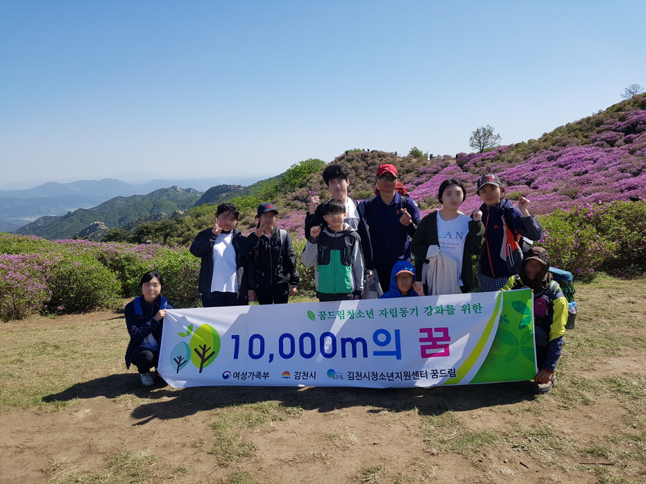 | 김천시청소년상담복지센터(센터장 김기식) 학교밖청소년지원사업 꿈드림팀은 5월 4일 학업을 중단한 청소년들과 함께 합천 황매산 등반을 다녀왔다.