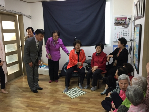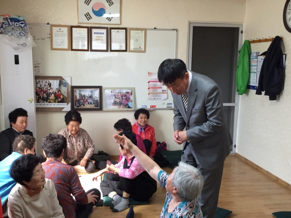 경로당을 찾은 평화남산동 김영욱 동장은 그 동안 지역사회발전을 위해 헌신하신 노인분들에게 존경과 감사의 마음을 전했다.