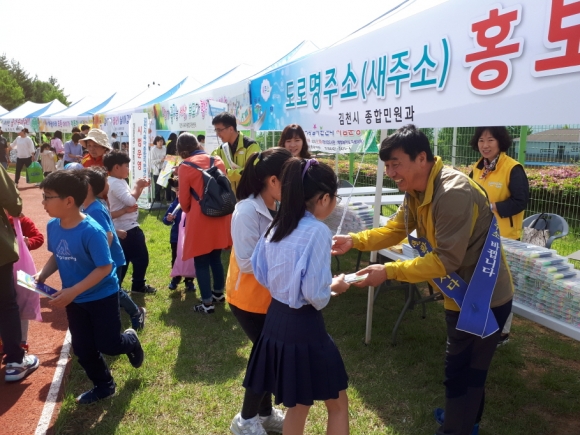 | 김천시(시장 박보생)는 제23회 김천 어린이날 큰잔치 행사에 도로명주소(새주소)홍보관을 운영하여 행사에 참석한 어린이 및 부모님들에게 도로명주소 홍보를 하였다고 밝혔다.