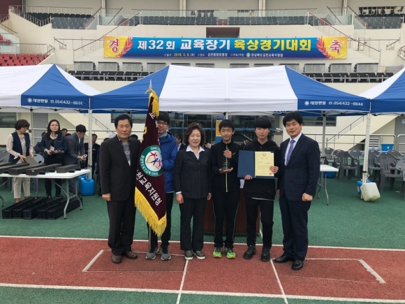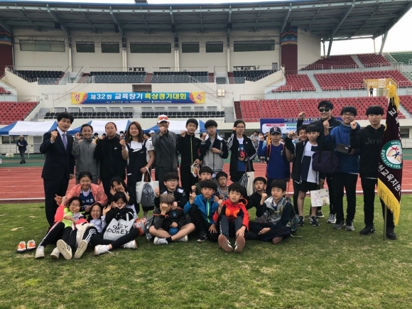| 율곡초등학교(교장 이삼영)는 5월 8일(화) 김천종합운동장에서 열린 2018년 교육장기 육상대회에서 참가하여 지난해에 이어 남자부 종합우승을 차지하며 반환을 위해 가져갔던 우승기를 다시 가져왔다.