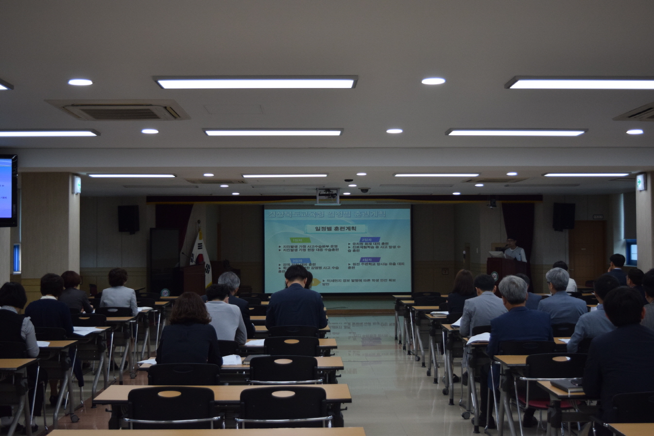 | 경상북도김천교육지원청(교육장 신정숙)은 오는 5월14일(월)부터 5월18일(금)까지 전국에서 실시되는『2018 재난대응 안전한국훈련』준비에 만전을 기하고자 5월 11일 김천교육지원청 3층 대회의실에서 교육지원청 전 직원을 대상으로 사전 설명회를 실시하였다.