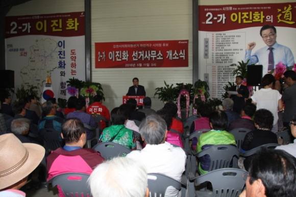 |  | | | ⓒ 김천내일신문 | | 자유한국당 “마”선거구(대덕면, 지례면, 증산면, 부항면, 구성면, 대항면, 봉산면) 2-가 이진화 예비후보자(대덕면) 선거사무소 개소식을 가졌다. 이진화후보자는 개소식을 가지고 30여일 앞두고 있는 가운데 6.13지방선거에 본격 선거운동에 들어갔다. 개소식을 하는 이날 김정국 전 김천시의회의장, 전정식 전 의원, 정태희 대산농협조합장을 비롯한 대덕면 조직단체장, 종교단체 및 가족, 지지자들이 참석했다. 내빈들의 격려사에 이어 당선을 기원하는 켸익 절단식과 기념촬영으로 진행됐다. 이진화 예비후보자는 인사말을 통하여 지역 농촌의 실정과 6차산업을 강조하며 보건복지, 일부 몰지각한 시의원들의 행태를 바로잡고 시민의 혈세인 시의 예산집행에 심혈을 기우려 지역발전에 앞장 설 것을 다짐하고 제8대 김천시의회 입성 할 수 있도록 지역민들의 적극적인 지지를 호소했다.