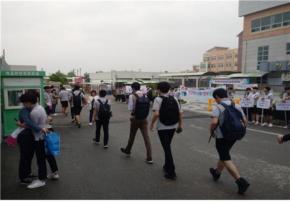 관심과 배려로 공감하고 소통하는 행복한 학교문화 조성을 위해 실시한 이 행사는 언어문화개선 동아리와 친구사랑 또래상담자, 각 반 반장, 부반장, 선생님들이 함께 현수막과 피켓, 어깨띠를 두르고 등교하는 학생들을 하이파이브나 튤립허그로 반기는 내용으로 진행되었다.